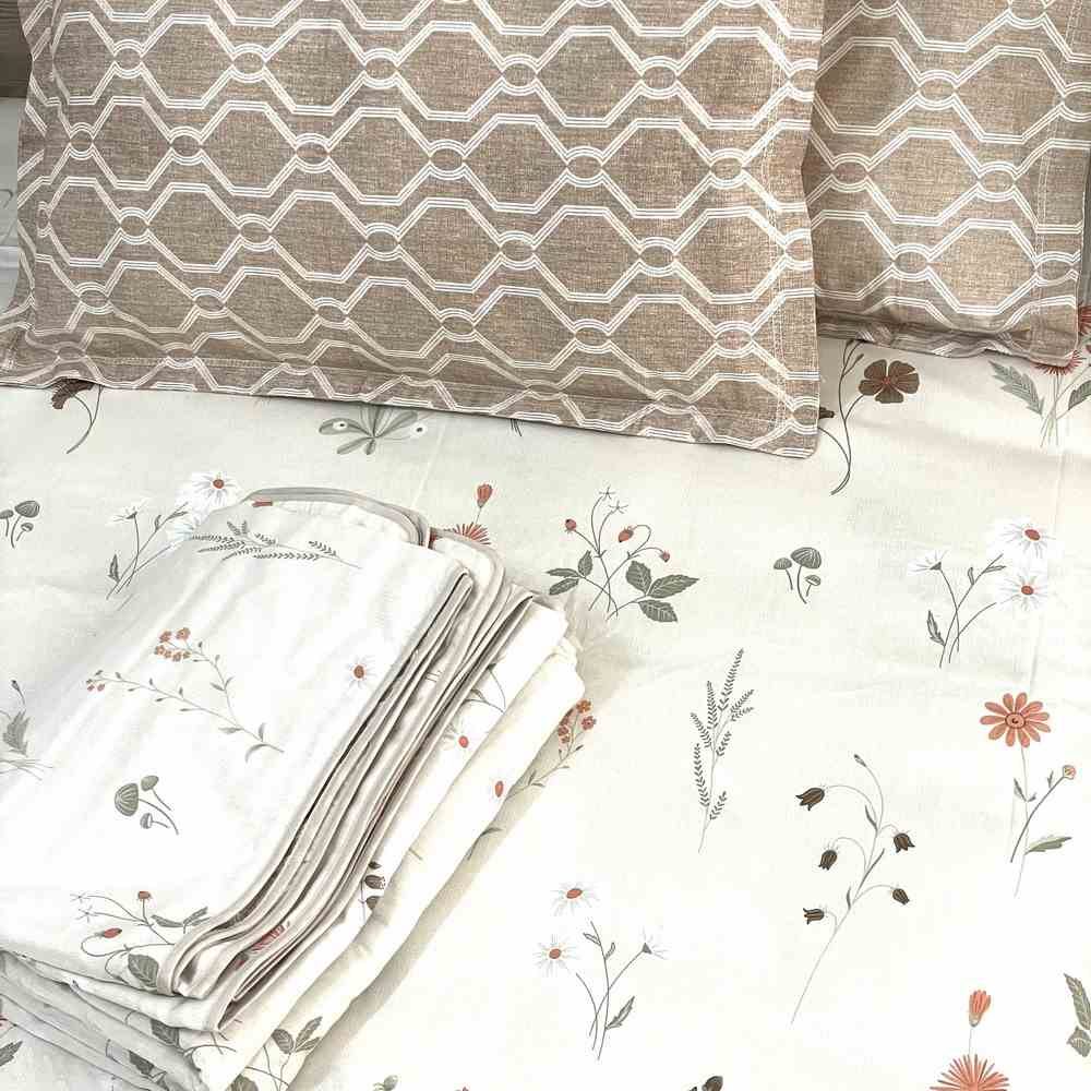 Premium Pure Cotton 400 TC 100% cotton flat King size bedsheet with reversible Dohar, Made with super soft cotton fabric, Size: King 108*108* INCHES flat sheets,2 Pillow covers 18*28 INCHES, ,Soft PureCotton Reversible Dohar with a flanel layer inside 108*108 INCHES